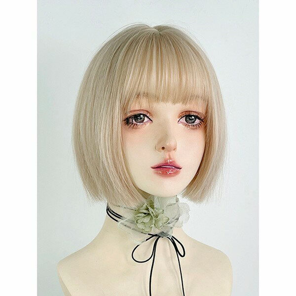 ウィッグ フルウィッグ 短髪 ゴールド ボブ ぱっつん前髪 前髪あり ハロウィン 原宿風 かつら コ ...
